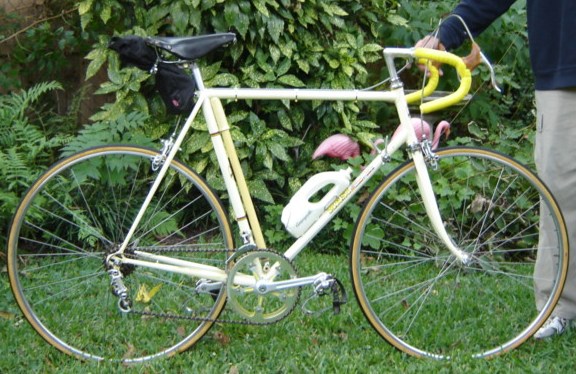 The photos of Masi and me were taken on June 21, 1971. I went to his shop at the Vigorelli Velodome at 19 Via Arona around noon and spent the rest of the day with him and Alberto. The other little man in the shop was a worker friend of Masi. He was very nice and spoke little English.(I think there is only one shot of him). Alberto was there wrapping up bikes for the Tour de France. Eddy Merckx had been in the shop two weeks before I got there and had ordered twenty Masi bikes, so they had been busy filling that order. Merckx rode for FAEMA that year and was suppose to ride another brand of bike, but he refused to ride anything except Masi. So he had Masi build the bikes and he put another transfer on the frame to satisfy Merckx’s contract with the other team. I also saw a Masi bike that Faliero had built with Peugeot transfers and paint. Faliero said the rider was on the Peugeot team, but would ride only Masi. It looked just like a Peugeot PX10, but you turn it upside down and there was the “M” cutout on the bottom bracket. The other man seen in the photos is Masi’s business manager. He spoke very good English and was able to help me with details and explaining what I wanted on the bike, etc. Masi and I discussed what type of riding I was doing and then proceeded to write down gear ratios. To this day, I am still amazed at his ability to put together a cluster in his head and know that it will work. Of course, I still use it and haven’t changed it at all. I did change the front chain ring from his 52 to a 54 tooth. The other is a 49 tooth. Faliero asked me if I wanted Reynolds 531 or Columbus when we were discussing the bike and I asked him, “What are those over there”…pointing to the bikes on the wall. He said “Columbus”…I said let’s go with that. He told me the bike would be ready in 10 days and to come back and pick it up….that was out of the question, because I would be in England. So I left Masi with a $20.00 deposit of American Express Check for that bike. I don’t think many people would do that today. He was so kind and gracious to me. He was also so proud of the Track bike he had built and couldn’t wait to show that to me. It was Champagne metallic in color and extremely light in weight. He wanted me to buy that as well, but I told him I didn’t ride track bikes and probably couldn’t afford it as well. Speaking of price….after the bike was completed and shipped to me, the total price was 173,400 Lira which was $299.98. Of course that was 1971 money and that was a lot for me then. My bike is white, M60 on the bottom bracket, completely Campy, shipped to me in a box, complete and ready to ride. The bike was shipped 17 October 1972 from Milan by Alitalia Airlines and arrived in Dallas on 23 October. There was a labor strike in the Columbus Tube factory and it delayed things. It was a day that I will never forget….I ride the bike about 3 times a year and it still is a great thrill to ride.
