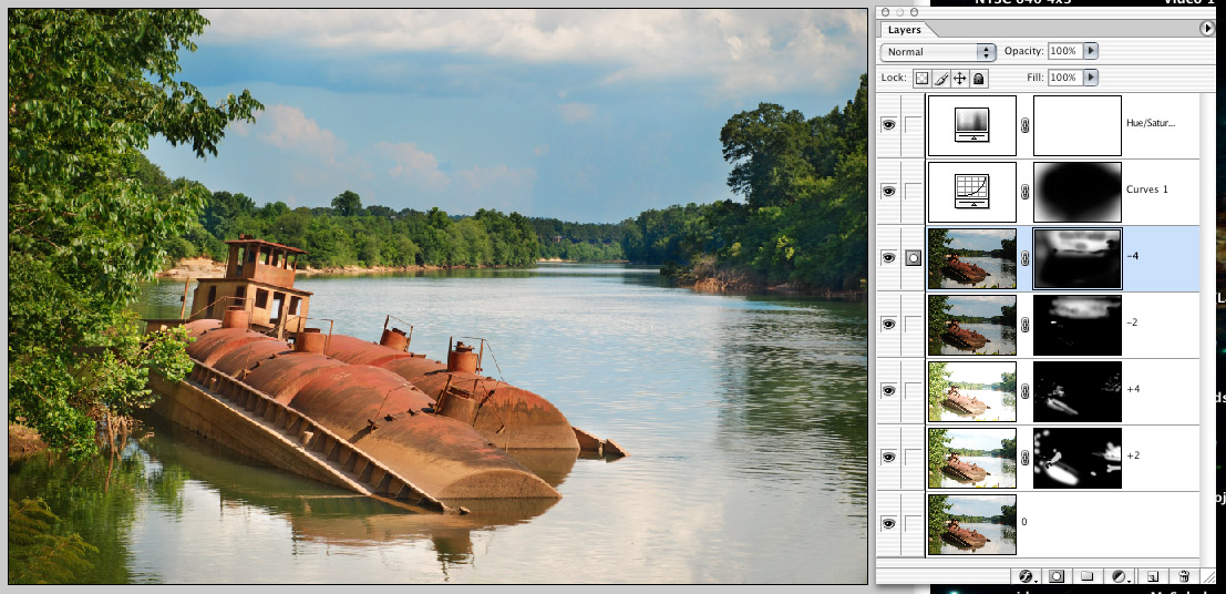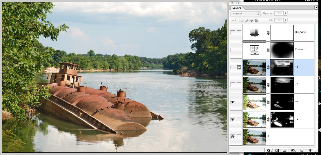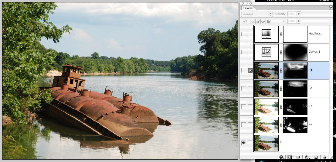 In the meantime, I am sitting here in front an older computer without my Photomatic, and using a pre-HDR version of Photoshop. I started thinking that perhaps I could "work backwards" the old fashioned way: With masks. Yeah, it might be time-consuming ... but it might also be more intuitive, given the many hours in the darkroom, not to mention all those drawing and painting classes. Maybe if I'm not too rusty I could do this quickly enough for it to be a reasonable alternative to HDR software.