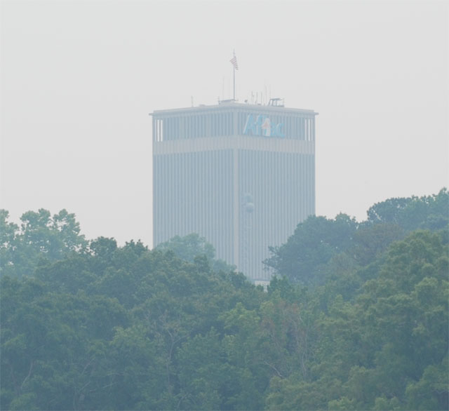 HERE, It's HERE, It's HERE, It's HERE, It's HERE, It's HERE. Here's a shot of the AFLAC tower, only a quarter mile away. 31 May 2007: This shot of Miyagi was taken with flash in a totally dark room (using the focus assist lamp) and shows the amazing difference in dynamic range between the D80 and my old camera. His hair is pure white and pure black... resolving detail in both has always been a problem for the Minolta, requiring a lot of bracketing or a lot of Photoshop work. In this case, the shot was great right out of the camera, requiring only a bit of color balance adjustment.