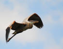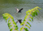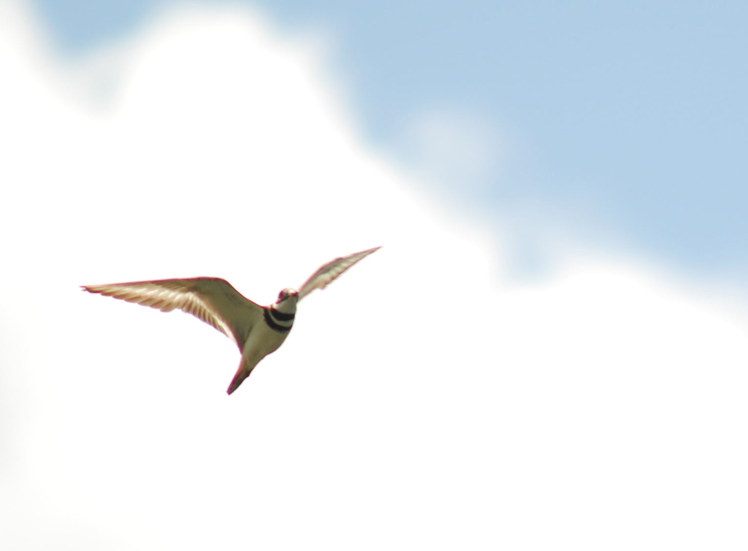 27 June, 2007: At lunch I brought my 100-300 zoom down to the Riverwalk and went down the bank to the water's edge. Actually, I went out on some rocks that went another ten feet or so out into the river. Not that it helped much, the birds were still pretty shy. I did get a few good photos, but like the others they all needed some serious cropping. This little duck was the only one who got close enough for me to back off from full zoom. When I heard this guy calling overhead, I thought it was a hawk. According to my bird book, its a killdeer. I had just enough time to raise the camera, I didn't get to focus or adjust the aperture... but maybe I'll get another try at him one day. Where do I go from here? Limited as I am by budget, the wish list is going to have to be short. Right now, the only things I can see myself getting are small items like a lens pen, a wireless remote and a camera bag. I can see that if I keep on shooting wildlife, I am either going to have to figure out a way to get a longer and faster lens, or else really improve my stalking skills and learn to get closer the old-fashioned way. Birds in flight have been particularly frustrating... manual focus lenses are slow and inaccurate without the microprism and split image screens that my film cameras had. Then there's the fact that you need fast shutter speeds to stop a flapping bird, but all my long lenses are slow as hell... so even in bright light I've got problems. Macro work is a problem