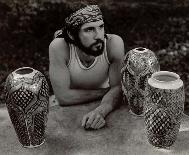 Hovey Pottery - click to enlarge Wheel-thrown porcelain. Decorated in underglaze blue and