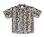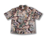 Hawaiian Shirts The following pages are a modest collection of photos of what some might call Hawaiian shirts. OK, in the traditional sense maybe some of them aren't, but almost all of them could be mistaken for one by folks who don't know any better. So if you're in search of an in-depth reference on the history of the "Hawaiian" (or "Aloha") shirt, boy did you come to the wrong place... I'm no expert, just a guy who buys and wears shirts that appeal to him. If you're interested in learning more about the real deal, check out the excellent books on the subject listed below and if you'd like to see some online examples of older and more historically significant shirts, please visit Jim's excellent site. Click on the links below to go to the page for that shirt. Each of the three photos you'll find there (shirt, label, button) can be enlarged by clicking on them. The shirt photos are quite large, just a warning if you have dialup. Be sure to stop back occasionally... I'll be buying more shirts until my wife makes me stop. The Aloha Shirt: Spirit of the Islands,